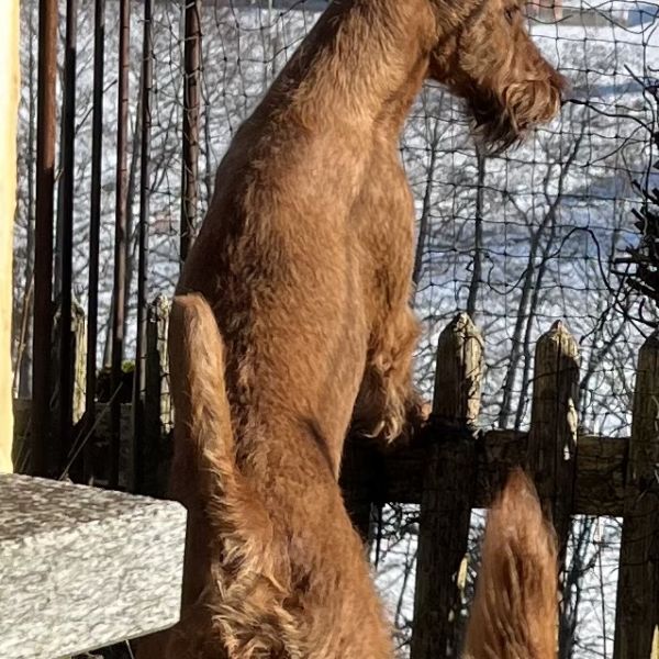 "Zumba",Champion & C.I.B., klein,drahtig, robust und super klug! Ein Irish Terrier, wie er im Buche steht. Zumba ist mit nicht einmal 2 Jahren (und trotz Covid-19) bereits Champion geworden. !!!Zumba hat z.Zt. Welpen (*12.04.2024, 3 Rüden, 2 Hündinnen)!!!