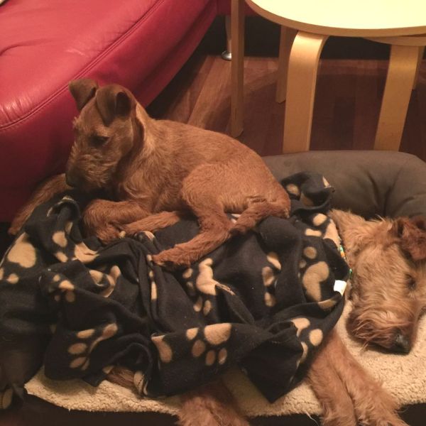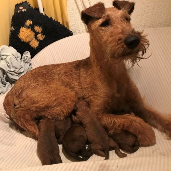 Zur Zeit leben sechs Irish Terrier ständig mit uns: