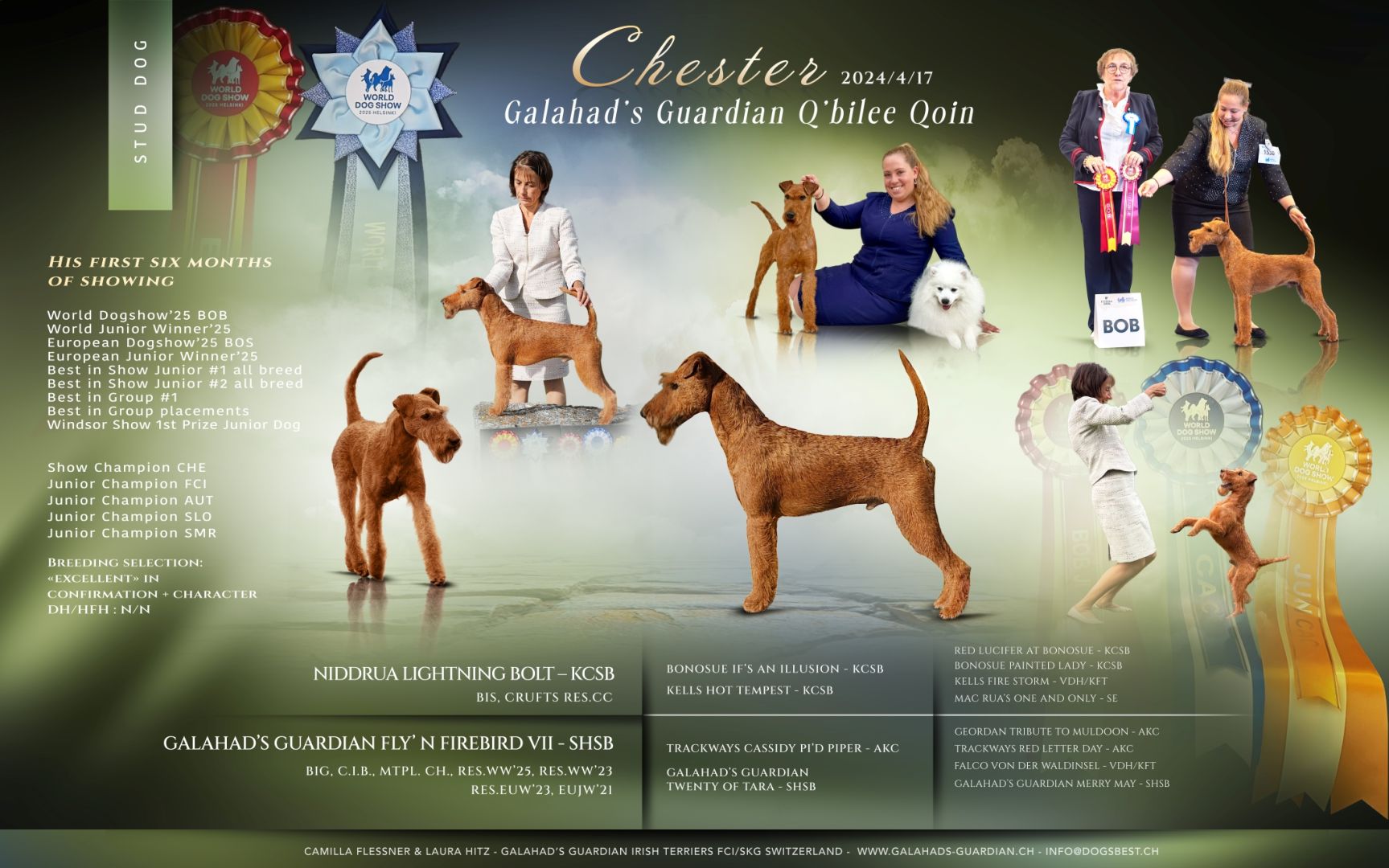 Unser Jungrüde • Galahad‘s Guardian Q‘bilee Qoin • aka CHESTER rockte nachhaltig die Bühnen der Welt und konnte, neben vielen Erfolgen, das BEST OF BREED an der World Dog Show 2025 für sich entscheiden und vier Monate zuvor das BEST OF OPPOSITE an der European Dog Show 2025. Er blieb auch danach weiter auf Kurs im Showring und erntete höchste Auszeichnungen mit mehreren International BEST TERRIER IN SHOW, CHAMPION OF CHAMPIONS und einem ALL BREED BEST IN SHOW.